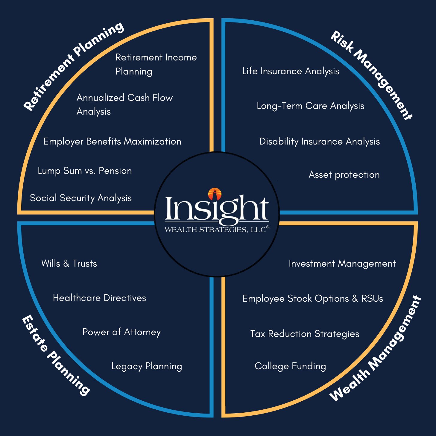 Insight’s investment service is completely customized to each individual client. Whether you’re a veteran investor or a newcomer to the world of finance, we’ll work with you to pinpoint your overall financial goals and build an actionable financial plan to get you there.